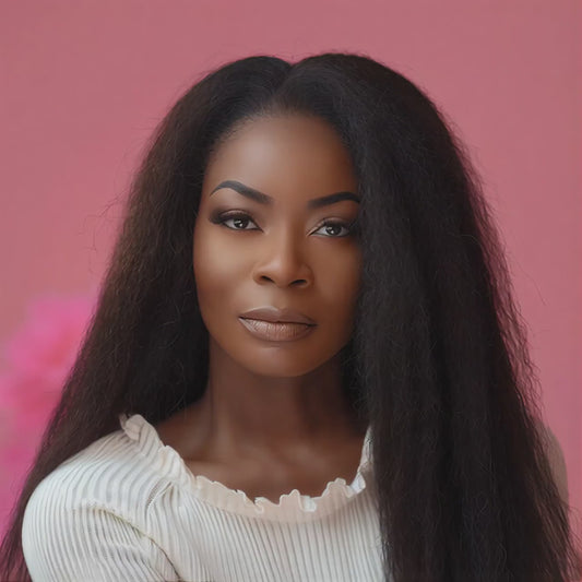 Kinky straight ook bekend als yaki haar, simuleert de textuur van natuurlijk afrohaar dat is uitgerekt of geblowdried, maar niet volledig steil is gemaakt.